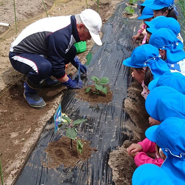 年中組つばめ組さんが畑にナスの苗を植えましたいっぱいできて何して食べようかなぁ〜(*^_^*)楽しみ