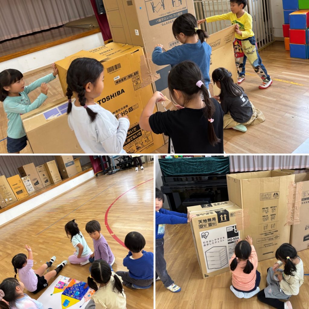 ダンボール製作 2025 10/15 ブログ 2025年10月15日 今年もはじまりましたよ! 年長さんが楽しみにしていたダンボール製作! まずは設計図から…!! 次にダンボールを選んで…! ガムテープで接着っ! グループで力を合わせて作っていきます! 完成が楽しみです😊 ブログ よかったらシェアしてね! URLをコピーしました! URLをコピーしました! 5歳児交流会 幼年消防クラブパレード この記事を書いた人 kodomoen_mayu 関連記事 餅つき会 2025年11月28日 お店やごっこ 2025年11月21日 完成したよ! 2025年10月30日 色塗り最高! 2025年10月24日 さつまいも掘り 2025年10月23日 観劇 2025年10月20日 英語であそぼう 2025年10月20日 お弁当の日 2025年10月20日