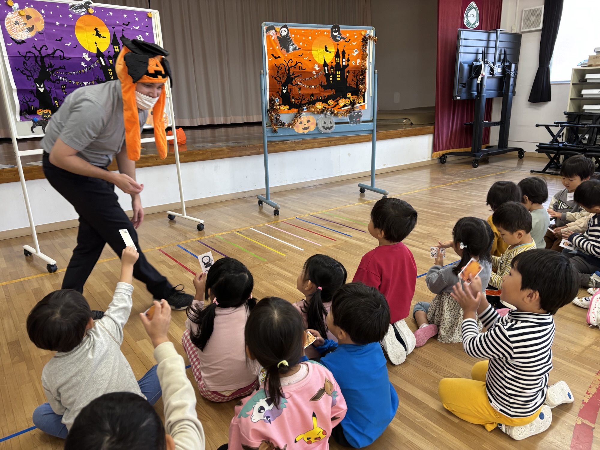 英語であそぼう 2025 10/22 ブログ 2025年10月20日2025年10月22日 今月の英語であそぼうはハロウィンでした🎃 ゲームをしたりハロウィンの合言葉を言ってお菓子をいただいたりしましたよ😊 ブログ よかったらシェアしてね! URLをコピーしました! URLをコピーしました! お弁当の日 観劇 この記事を書いた人 kodomoen_mayu 関連記事 餅つき会 2025年11月28日 お店やごっこ 2025年11月21日 完成したよ! 2025年10月30日 色塗り最高! 2025年10月24日 さつまいも掘り 2025年10月23日 観劇 2025年10月20日 お弁当の日 2025年10月20日 幼年消防クラブパレード 2025年10月17日