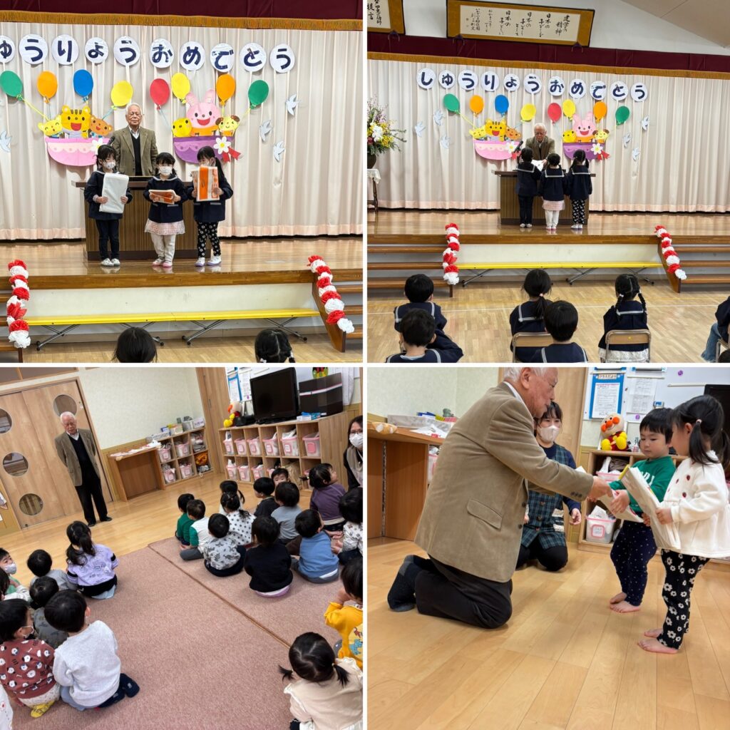 修了式 2026 3/30 ブログ 2026年3月19日2026年3月30日 今日は修了式でした。 0歳から4歳までの子どもたちは 園長先生からご褒美をいただき 1つ大きくなってお兄さんお姉さんになることを楽しみにしているようでした♪ ブログ よかったらシェアしてね! URLをコピーしました! URLをコピーしました! 卒園式 この記事を書いた人 kodomoen_mayu 関連記事 卒園式 2026年3月14日 お別れ会 2026年3月9日 お箸練習 2026年2月25日 保育参観 2026年2月20日 防災頭巾 2026年2月10日 節分 2026年2月3日 小学校に行ってきました! 2026年1月27日 食育 2026年1月26日